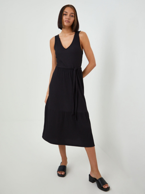 Black Ribbed Jersey Midi Dress Women George At Asda